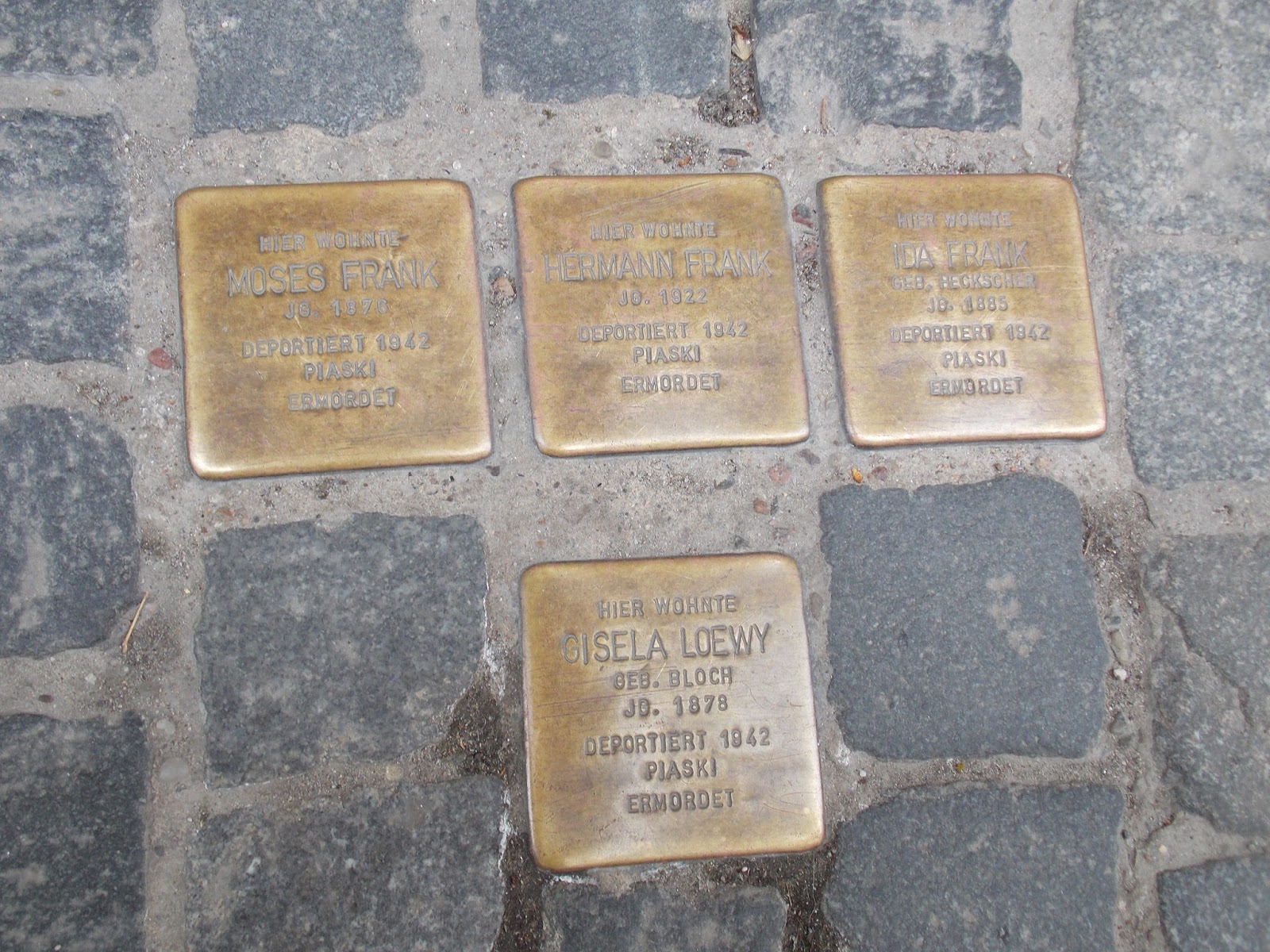 The stolperstein project started in the 1990 as an exhibit commemorating the deportation of gypsies in Cologne and has grown into a movement to memorialize the people who lived and worked at the locations where the stones are placed. Thanks to Ms Ederer, in charming Regensburg, I found my first stumble stone.