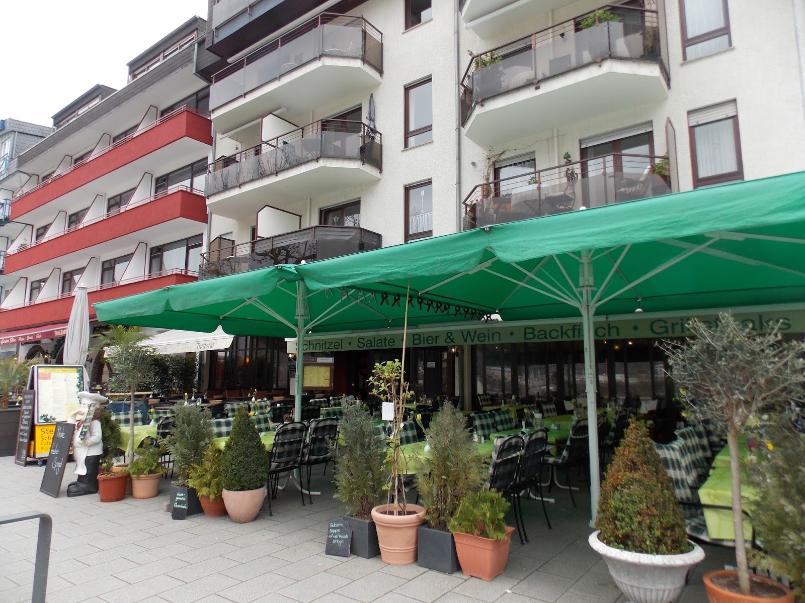 I was the guest of the Koblenz Tourist office at the Winzerstube and Amalfi restaurant on the river front. An unusual mix of two restaurants side by side with one entrance: Italian to the left and German to the right. On Sunday night they were very busy but found me a table.