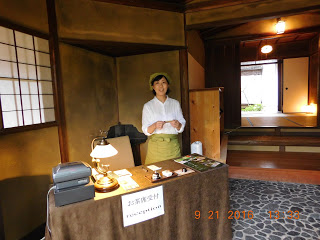 The tea room was large and open. A platform covered most of the room and was covered with a thick tatami mat. There was NO seating so a westerner not accustomed to sitting on their knees for a long period of time might have a problem.