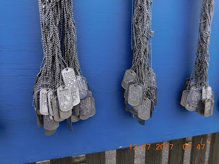 As most of the crowd rushed across the bridge to see a war ship, I took the small path to the left towards a blue wall. As you get closer you recognize the display. There are dog tags representing all the men from South Carolina who gave everything during the war.