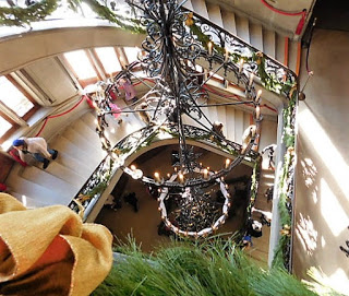 | The multi story stair case, according to a docent, was designed so women descending would not show their ankles |