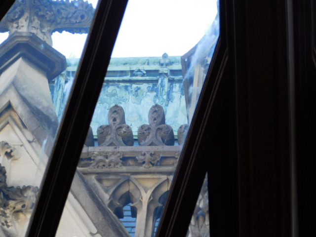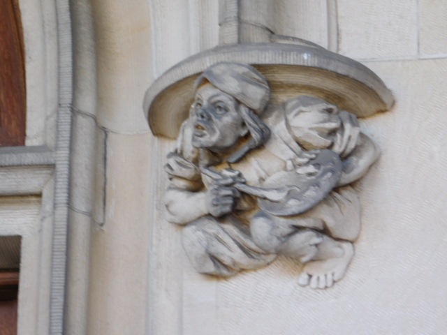 | The building construction (to me) is as interesting as the decor. Through this fascinating ceiling and support beams you can view wonderful grotesques many with unique expressions. |