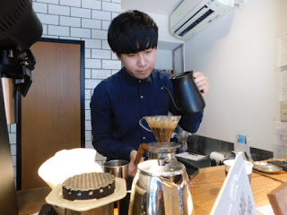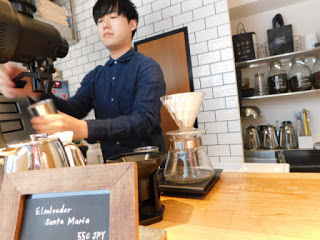 A small coffee stand in a busy market