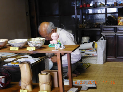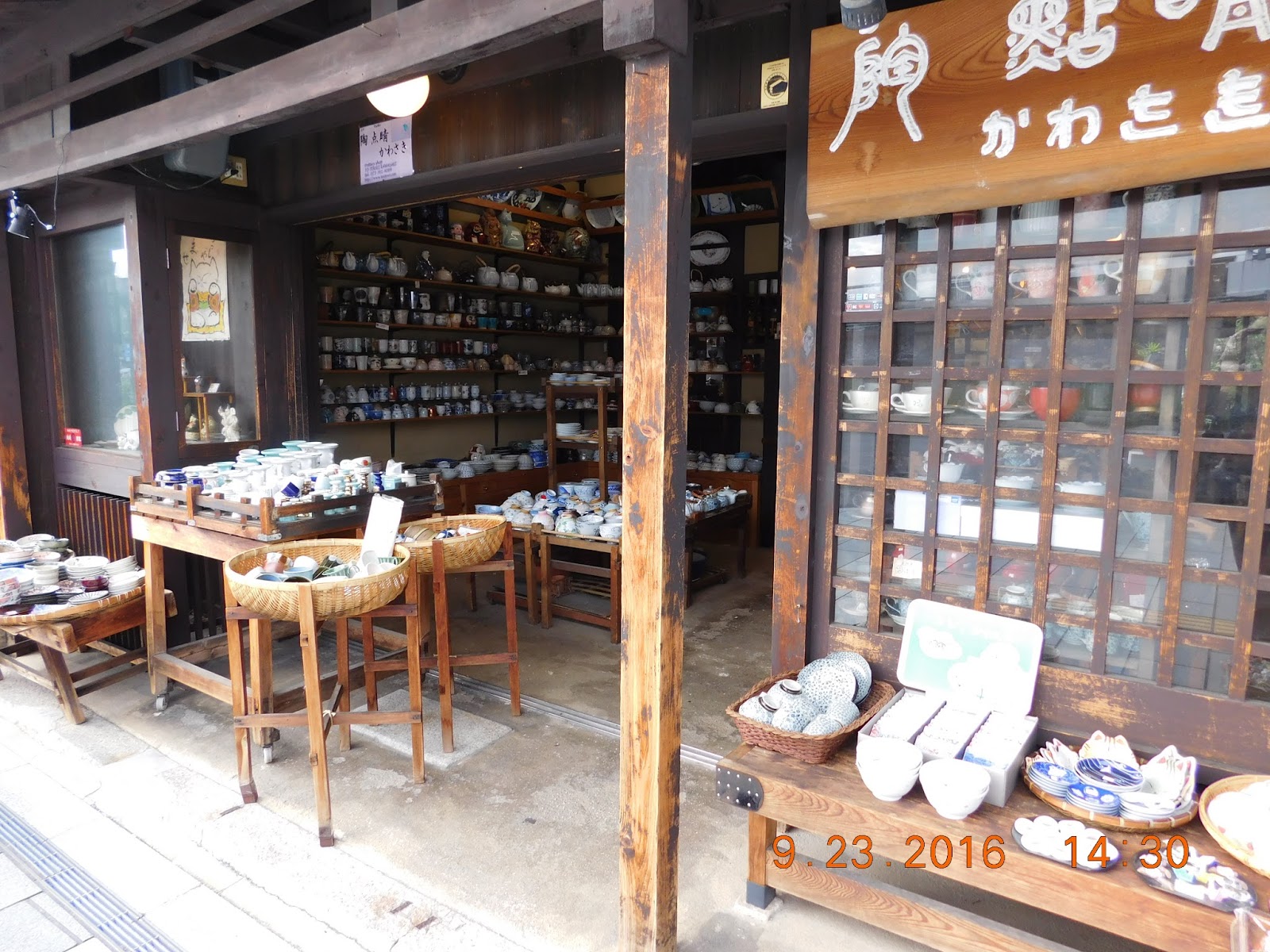 | Just down the street was another ceramic shop. This shop featured tables of items by price. An interesting alternative approach. |