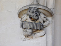 | The building construction (to me) is as interesting as the decor. Through this fascinating ceiling and support beams you can view wonderful grotesques many with unique expressions. |