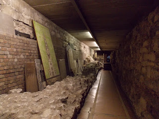 Below this quiet oasis is remnants of Roman pavement and visitors are welcome to explore the narrow passage way with artifacts and original walls exposed.