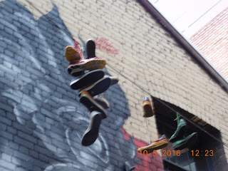 | I could not obtain confirmation but was told, shoes over the wires originally marked a spot for street transactions |