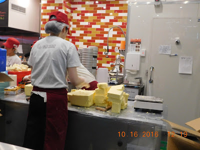 The space is not that large to produce hundreds of cakes but there is a well trained army of workers, each with an assigned task: from cutting butter into slabs,mixing batter or pouring into pans.