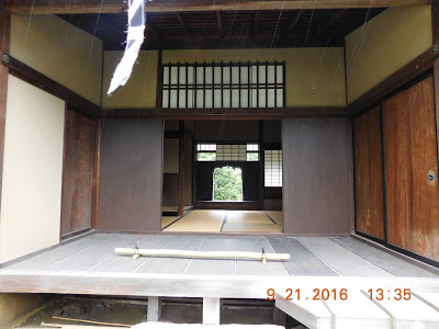 The tea room was large and open. A platform covered most of the room and was covered with a thick tatami mat. There was NO seating so a westerner not accustomed to sitting on their knees for a long period of time might have a problem.