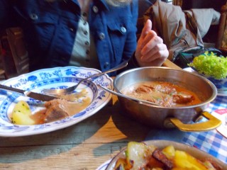 Who said German food was all sauerkraut and hot potato salad? And please note the size of the water glass and beer glass